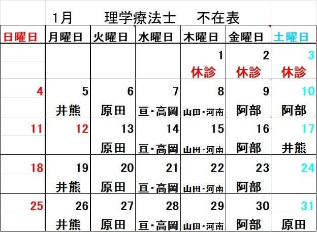 理学療法士 不在表