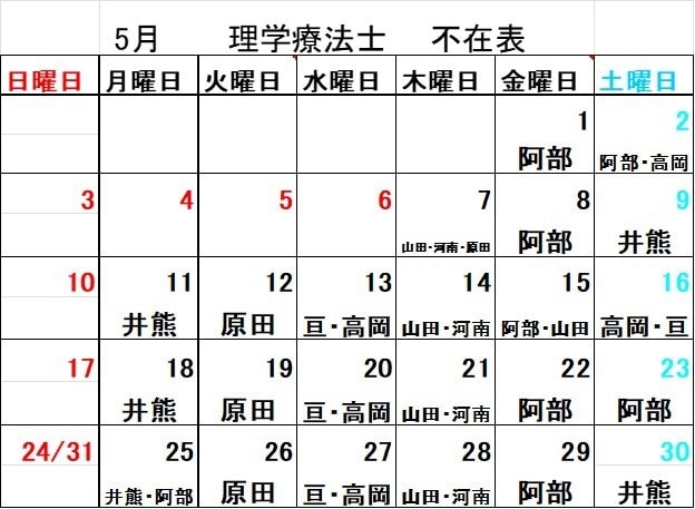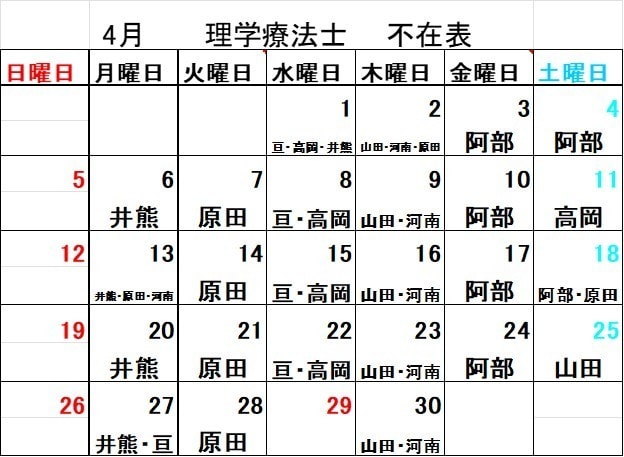 担当理学療法士が不在時は他の理学療法士でも対応は可能です