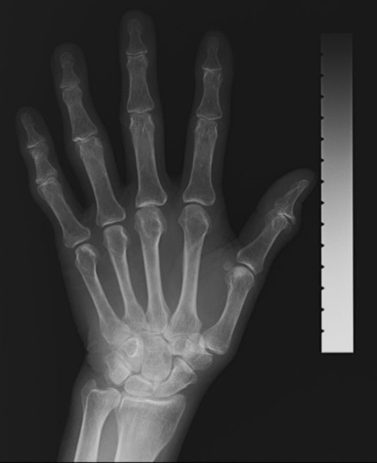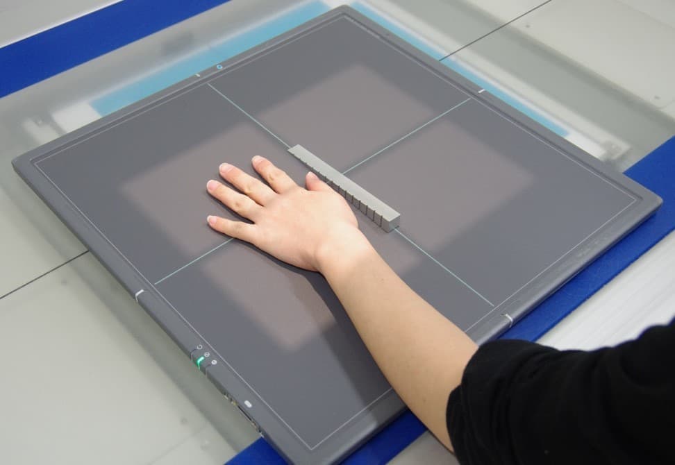 当院では左手を撮影するDIP法を行なっております。極めて少ないX線量で行う低侵襲な検査法です。